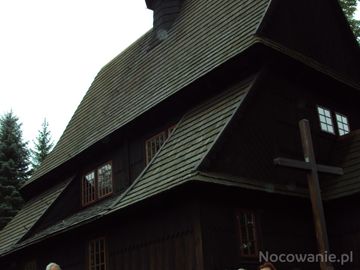przed kościołem parafialnym pw. Matki Bożej Częstochowskiej, wzniesionym w latach 1936-39. Budowniczym był cieśla z Niebocka Władysław Myćka. Jednonawowy kościół reprezentuje wzorowany na kościołach podhalańskich styl narodowy w drewnianej architekturze okresu międzywojennego. W ołtarzu głównym krucyfiks z przełomu XIX-XX wieku - dzieło Józefa Laska z Humnisk.
