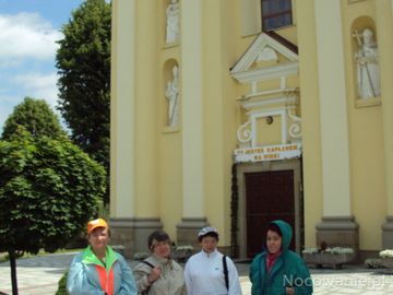Przed kościołem pw. św. Mikołaja z 1 poł. XVIIIw. W fasadzie posiada dwie wieże, we wnękach tych wież cztery rzeźby z XIXw. Nad gł. wejściem "Oko Opatrzności".