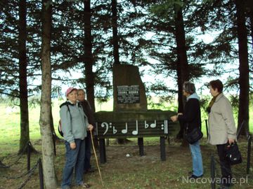 przed obeliskiem z tablicą i udekorowaniem artyście Adamowi Didurowi poświęconych,ufundowanym przez mieszkańców wsi w 1984r. dla uczczenia 110 rocznicy urodzin światowej sławy śpiewaka - stąd pochodził. Monument zaprojektowany został przez p. Mariana Czaplę - miejscowego rzeźbiarza, malarza, muzyka i poetę, laureata wielu konkursów i wystaw.