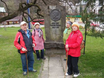 przed pomnikiem : dla uczczenia 400 lat uzdrowiska i Wojciech Oczko na medalionie, po otoku : przybliżenie postaci. (Iwonicz Zdrój)