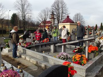 przed pomnikiem z nazwiskami ofiar UPA - postawionym w 2004r. w 60-tą rocznicę egzekucji.