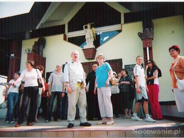 przed Sanktuarium pw. św. Ojca Pio /w stanie ukończonej budowy - śladowo uposażonej, z czytelnym dla wiernych - przekazem/. W kościele są złożone relikwie Ojca Pio - Świętego z Pietrelciny, pielgrzymi upodobali sobie to miejsce chcąc żyć duchowością tego Świętego. W każdy piątek o godz 17.00 odprawiana jest Droga Krzyżowa - na odległość jak ta w Jerozolimie.