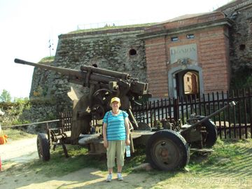 przed wejściem do największego Fortu Srebnogórskiej Twierdzy - "Donżon", tam wejdziemy mi.in. do kazamat, koszar i na basztowe tarasy. W 1807r. tu dotarły wojska francuskie, po paromiesięcznym oblężeniu zniszczono wszystko dookoła ale sama twierdza pozostała niezdobyta i nienaruszona. Obrona fortu przez Prusaków odbiła się echem w Europie i zaczęto stosować nazwę Śląski Gibraltar.