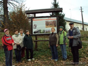 przed wejściem do parku dworskiego - tablica, a na niej o pałacu spalonym w 1944r. a w nim w XIX wieku mieszkała m.in. Henrietta Ewa hr. Kuczkowska zd. Ankwiczówna, wielka i niespełniona miłość Adama Mickiewicza, uwieczniona w jego twórczości po postacią Ewuni Horeszkówny. Były to czasy ich pobytu w Rzymie - oczywiście nie wspólnego, hrabina była mężatką, no ale serce nie...