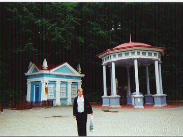przed: "Źródłem Józefa" na Placu Karola i Józefa Załuskich. Murowany kiosk ustawiony w l. 20-tych XXw. w miejscu dawnego drewnianego z podcieniem na kolumnach. (Iwonicz Zdrój)