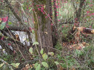 przy bobrowych żeremiach: trzmielina pospolita, jej jaskrawe owocostany nazywane są "kardynalskie czapki". (Uherce Mineralne)