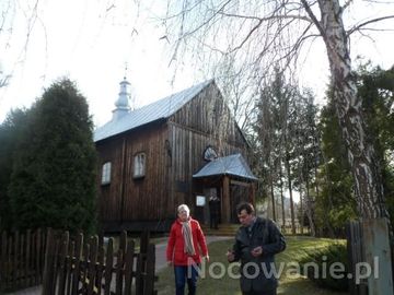 przy bramie głównej i furcie - otoczonej płotem / parkanem cerkwi, dziś kościoła. (Brzegi Dolne)