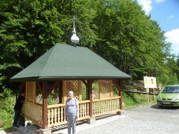 przy cudownym źródełku - ujętym i nakrytym pergolą, widoczna droga to dawny cesarski gościniec, wieś wzmiankowana była już w 1361r., była tu osada strażników królewskich pilnujących granicy - ta była między Królestwem Węgier a Królestwem Galicji. Dziś ta droga prowadzi na Słowację - zaraz po zboczu góry serpentyny i zjazd do : Palota i Medilaborce - tam muzeum Warhola i piękna na wzgórzu cerkiew - cudeńko !