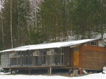 przy drodze: wiejskie obejścia a gospodarz tego pewnie gołębi pasjonat i hodowca tych szlachetnych, mądrych i uroczych ptaków. Ornitolog o gołębim sercu - tylko (Lalin)