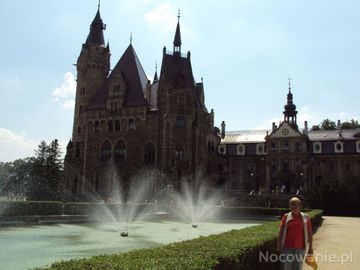 przy fontannach w ogrodach zamkowych.  (Moszna)