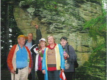Przy "Kamiennym Sercu Macochy" - pomniku przyrody, usatysfakcjonowani, uradowani - bo cel osiągnięty - a jak widać /po portkach i w ogóle/ łatwo nie było, oj - (Orelec)