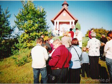 przy kaplicy podczas mszy świętej polowej, z udziałem parafian i turystów - w drodze na wzgórze Gruszka.