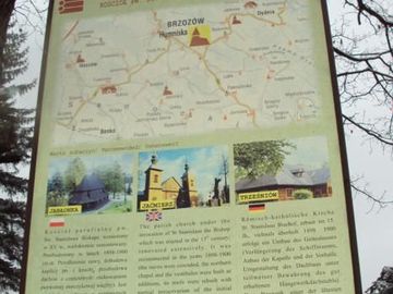przy kościele plansza a tam zaproszenie do poznania innych cennych obiektów w okolicy a my już tam byliśmy i zapraszamy do osobnych galerii i lektury opisów.