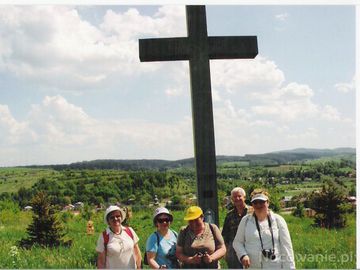 Przy Krzyżu Jubileuszu 2000 lat chrześcijaństwa na wzgórzu powyżej węzła kolejowego stacji w Starym Zagórzu /po dojściu od Zakucia - tj. m.n. skoczni narciarski (Zagórz)