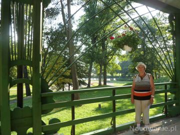 przy oranżerii - między pałacem i oficyną, widoczny staw z wyspą, aleje i nasadzenia parkowe. (Kisielów)