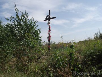 przydrożny krzyż upamiętnia miejsce, gdzie niegdyś kościół stał - i jak starsi powiadają - przed ołtarzem jego "krew się polała", bo...no i zbrukany krwią kościół "pod ziemię się zapadł" - z tej hańby, z grzechu tego !