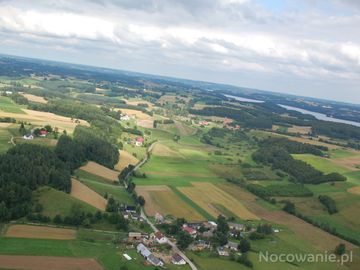 Przyrowie od strony zachodniej- panorama rynnowej doliny łąkowej w głębi Wygoda Łączyńska i jezioro Raduńskie (Przyrowie)