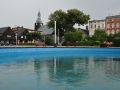 Rakoniewice, Rynek z fontanną w deszczu.  (Rakoniewice)