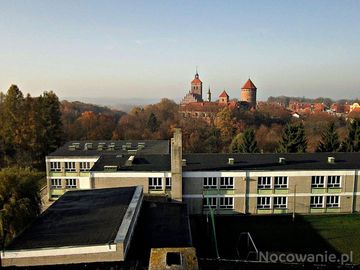 Reszel-widok na południową-wschodnią część starego miasta,na wprost dwa największe zabytki ,zamek i kościół oraz park miejski otaczający stare miasto od południowo-wschodniej strony starego miasta.