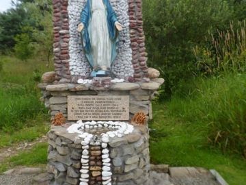 różaniec oplata źródło życia i należy z niego czerpać i nim się posilać - a to na postumencie figury Matki Bożej. (Tylicz)