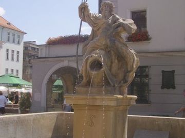 Rynek historyczna studnia-fontanna i rzeźba Neptuna