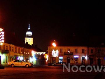 Rynek sieradzki nocą (w tle wieża kolegiaty) (Sieradz)