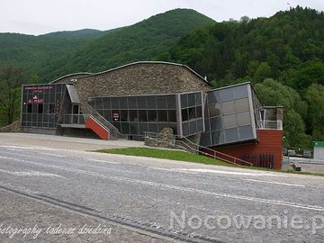 Rytro-budynek Al Plastu , producenta okien. Linia architektoniczna budynku nawiązuje do ruin zamku . (Rytro)
