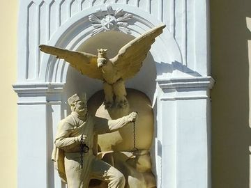 Rzeźba sokolnika zrywającego kajdany niewoli (Sanok)