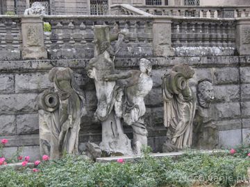 rzeźby - w stanie ruinalnym, pewnie kiedyś zdobiły alejki parku pałacowego.