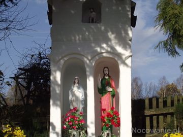rzeźby Chrystusa i Matki Bożej w zabytkowej - z 1912 roku - kapliczce przydrożnej, w niszy powyżej rzeźba ludowa Chrystusa Frasobliwego - całość otoczona opieką, pobielona, zadbana i ukwiecona - to są tzw. małe obiekty sztuki sakralnej a kiedyś najbliższe kościoły były w Dydni i Mrzygłodzie co też powodowało, iż "głód kapliczkowy" był wielki i z tego też wieś ta słynie...