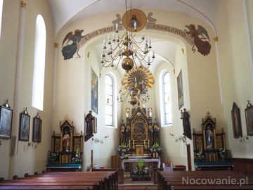 Sanktuarium św. Józefa - Prudnik Las - kościół wewnątrz, ołtarz główny i nawa, Klasztor Zakonu Braci Mniejszych.