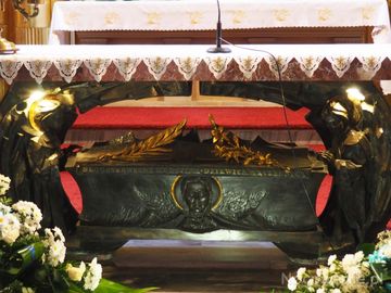sarkofag pod mensą ołtarza głównego - w trumience doczesne szczątki bł. Karoliny Kózkówny.