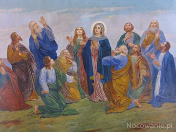 scena biblijna - polichromia sufitowa nawy głównej, Matka Boża i apostołowie. (Pielnia)