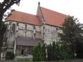 scena wykuta w kamieniu - nad bocznym wejściem do bazyliki : król Polski powierza kościół w opiekę Matce Bożej i Jej Dzieciątku co czyni jako poddany i na kolanach w obecności biskupa ks. Wincentego Kadłubka i przy godle państwowym - tu na kartuszu piastowski orzeł.