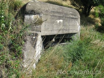 Schron nr 1 Armii "Pomorze" z 1939r. Położony jest tuż za domkiem dróżnika, w stoku górki - przy linii kolejowej Bydgoszcz - Nakło n. Not. Widok od strony strzelnicy schronu.