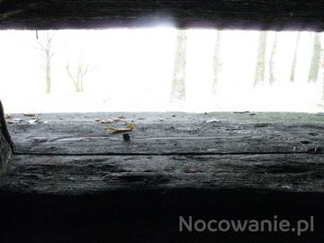 Schron nr 1 Armii "Poznań". Tradytor jednostronny. Widok na pole ostrzału, wprost z wnętrza izby załogi schronu.