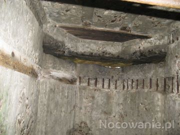 Schron nr 11. Pozostałości wewnętrznego drewnianego szalunku na ścianach schronu. (Osowiec)