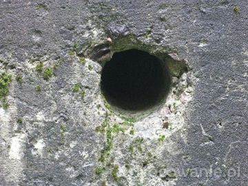 Schron nr 14 Armii "Pomorze" z 1939r. Odcinek OSO(Ó)WIEC. Otwór wentylacyjny kominka piecyka, ogrzewającego izbę bojową załogi schronu. (Osowiec)