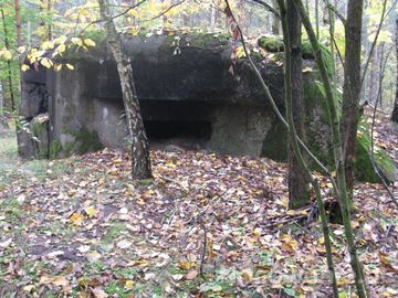 Schron nr 15 Armii "Pomorze". Tradytor dwustronny. Mocno rozbity. Widok od strony zachodniej strzelnicy. "Przedmoście Bydgoszcz". (Osowiec)