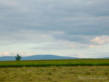 Sianokosy we Włosieniu. W tle Góry Izerskie.