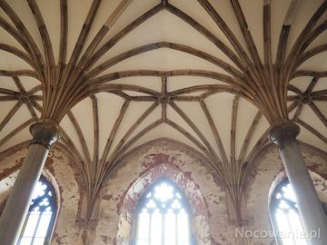 sklepienie kaplicy pałacowej, okna zdobiły piękne witraże - niegdyś, dzisiaj szyby kompletne - i to już cieszy ! (Kamieniec Ząbkowicki)