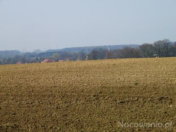 słabo widoczne w oddali domostwa szczyt kościoła wsi Siekierczyn i całą resztę