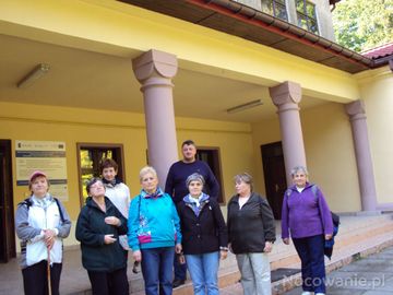 słuchaczki / studentki Uniwersytetu Trzeciego Wieku z Sanoka - przed szkołą a p.Tomasz Warchoł - zatrudniony w tej szkole i mieszkaniec tej wsi podzielił się wiadomościami o okolicy, dworach, kościołach oraz dziejach wojennych żołnierzy stąd pochodzących a poległych na wielu frontach m.in. pan Władysław Majcher zginął pod Monte Cassino - więcej : na planszach w holu / są w galerii - polecam !.