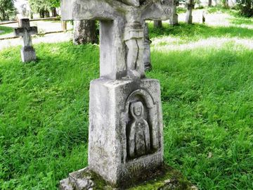 Stary , zabytkowy cmentarz greckokatolicki w Radrużu. Krzyże i figury nagrobne wykonane przez artystów - kamieniarzy ze Starego Brusna . Wsi nie ma , ludzi nie (Radruż)