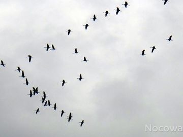 Stojcino- stada żurawi zbierających się jesienią w stada przed odlotem na południe.