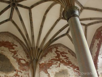 "strzępy" polichromii ściennej - niegdyś dzieła te tworzyli artyści światowi : z Italii, Francji, Prus, wyżej : sklepienia w kaplicy pałacowej. (Kamieniec Ząbkowicki)