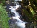 stylowy w bryle i starannie opracowany witacz na górze Dwernik Kamień, za nim słup ze strzałkami opisującymi szlaki turystyczne i wskazaniem szczytów do zdobyci (Dwernik)