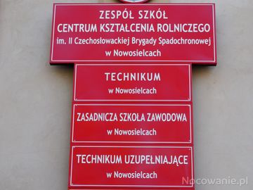 "szyld szkolny" - po prawej od wejścia do głównego obiektu zespołu szkół. (Nowosielce)