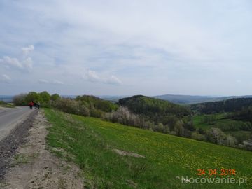 Szymanowa Góra - 478m npm a po prawej : Dział zwany Patrola - 443m npm a za nimi w dolinie potoku Kalniczka droga prowadzi do : w lewo do m. Olchowa /jest gale (Kulaszne)