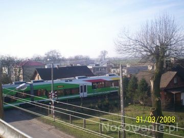 Szynobus na przejeździe kolejowym. Ulica Lipowa.